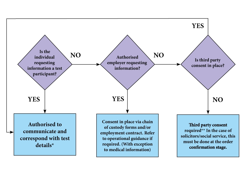 In addition to the specific disclosures of personal data set out in this section, we may disclose your personal data where such disclosure is necessary for compliance with a legal obligation to which we are subject, or in order to protect your vital interests or the vital interests of another natural person. We may also disclose your personal data where such disclosure is necessary for the establishment, exercise or defence of legal claims, whether in court proceedings or in an administrative or out-of-court procedure. In specific circumstances, you may also grant third party consent. This will provide authorisation for us to share your personal data with your nominated third party. Please refer to the Third Party Consent diagram at the end of this policy for detailed information regarding the request process. In addition, please refer to specific consent terms and conditions for your chosen test. This must be read and understood when signing consent to proceed with our services.